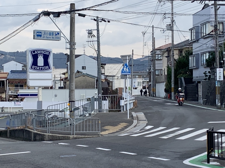 国道旧24号線「西山の交差点」を東へ,すぐのY字路のローソン右へまっすぐ行って下さい。小さな公園のある市営住宅を右に見て,宇治幼稚園を越えて右折をして回り込んだJR沿いの家です。